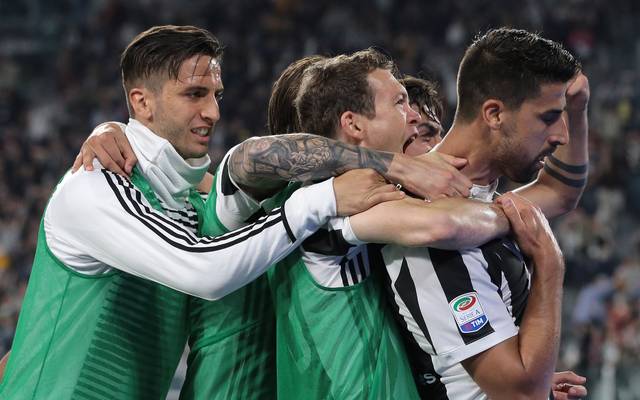 And now the juventus players come forward to collect their winners medals and assemble around the trophy.